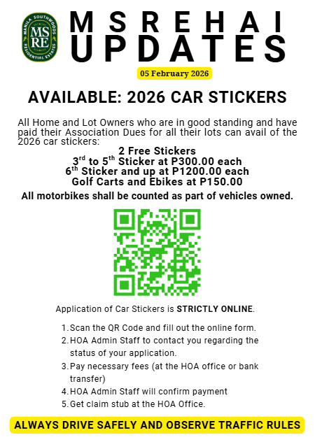 Application for MSREHAI Sticker is now ONLINE. Kindly apply thru the link below or scan the QR code above.